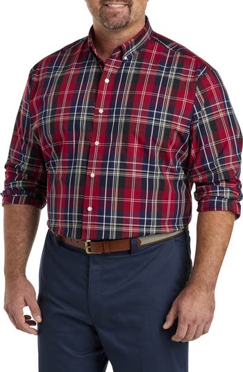 Crafted of soft and lightweight 100% cotton that keeps you feeling cool and comfortable, this Oak Hill wrinkle-resistant button-down shirt in a plaid pattern will take you from work to weekend in polished style. Designed at DXL with with proper proportions that fit and flatter Big + Tall guys, it has a with a roomy fit that allows for the freedom to move without restriction.