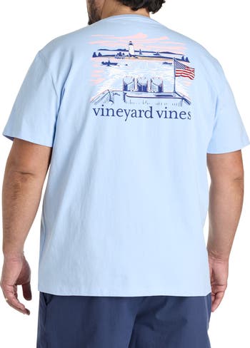 A picturesque lighthouse scene gives this vineyard vines graphic tee its laid-back vibe. Made with proper proportions and a relaxed fit for Big and Tall guys, it's crafted of soft, 100% cotton for an easy-to-wear feel that allows for the freedom to move without restriction. It features a screenprinted graphic at the left chest pocket and on back and is the perfect choice to pair with shorts, jeans, or our chappy swim trunks for a comfortable, casual look.