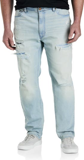 Purposely destructed and ripped, these distressed eco-friendly jeans with a touch of stretch are right on trend. Designed right here at DXL with proper proportions and a flattering fit for Big and Tall guys, they offer modern rip and repair styling and are the perfect choice to pair with your favorite graphic tees for edgy weekend style.