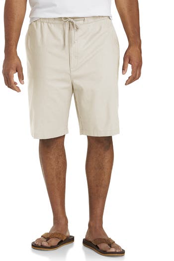 In a cool, breathable mix of linen and cotton, these easy-to-wear, loose-fit shorts pair perfectly with a linen sport coat for a night out or with a tropical shirt and sandals for casual style. Plus, they're a style you'll only find here at DXL in proper proportions and a flattering fit for Big and Tall guys. Exclusively ours55% linen/45% cottonLoose fitElasticized waistband with drawstringFlat-front styleSide pocketsBack button-flap patch pockets9½" inseam hits just below the kneeHand wash, cold; imported