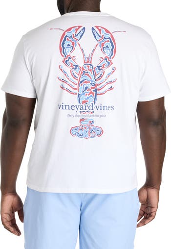 Let everyone know you're ready for summer in this lobster-print graphic tee from vineyard vines. Designed with proper proportions for Big and Tall guys, it's crafted in soft, 100% cotton with a relaxed, comfortable fit that allows for the freedom to move without restriction. With a screenprinted graphic at the left chest and on back, it's the perfect choice to "shell" out for a day of fun on the water.