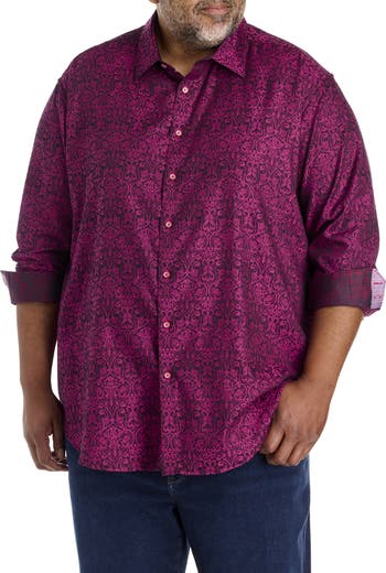 Based on a best-selling style from Robert Graham, this updated version is sure to become a go-to-favorite with its fresh-for-the-season color and eye-catching jacquard pattern. Designed in soft, 100% cotton, it's crafted with proper proportions and a flattering fit for Big and Tall guys and is another work of #WearableArt to add to your collection. Turn back the collar and cuffs to reveal a solid print pattern, too.