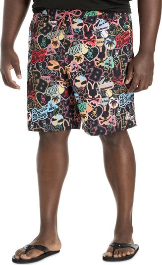 Make a statement in style wherever the sunshine takes you in these Psycho Bunny swim trunks, featuring a cacophony of colorful, graffiti-style graphics all over. They're crafted from lightweight, quick-drying polyester and are outfitted with a mesh lining for comfort. Designed with proper proportions for Big + Tall guys, they're sure to be a favorite in your collection. Plus, they come with a signature logo keychain and a packable, waterproof pouch that makes them perfect for travel. Pair them with our coordinating T-shirt for a complete look.