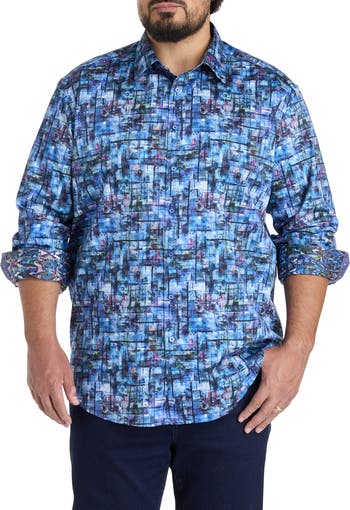 This Robert Graham sport shirt reimagines the classic button down with with an expressive satiny-smooth style. An allover abstract print in moody hues creates visual interest. Designed with precise proportions and an ideal fit for Big and Tall guys, it's crafted in a stretch cotton blend that's comfortable, easy to wear and allows for the freedom to move without restriction. Perfect for a night out, it effortlessly elevates any ensemble. Layer it under a blazer to complete the look.