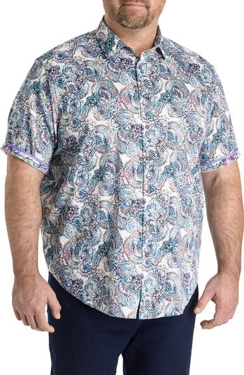 Vivid color brings this short-sleeve paisley sport shirt to life. You'll love how the colorful paisleys pop against the white background. Designed with proper proportions and an ideal fit for Big and Tall guys, it's crafted with the artistry and attention to detail that you'd expect from Robert Graham. Check out the contrasting pattern at the collar and cuffs too!