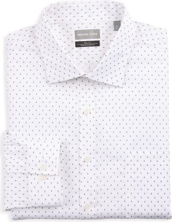 Looking to dress things up? This Michael Kors dress shirt gets the job done whether you're dressing it up for the office or not. The lightweight cotton blend is finished with an innovative stretch technology that allows for movement and durability, allowing it to keep its shape, wear after wear. Supersoft to the touch for luxurious comfort, it also wicks away moisture to keep you feeling cool and dry and resists wrinkles and creasing, making it the perfect choice for travel.