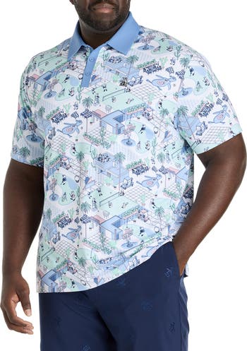 Original Penguin golf shirts are up there with the best in the game and we love this bold new style! It's a lightweight and breathable performance-driven style which embraces an allover print of the brand's mascot enjoying himself at the Palm Springs leisure club. A quirky design with a fresh color combination, the soft and flexible fabric offers supreme comfort with freedom of movement and moisture-wicking technology, while the Heritage Fit silhouette and side vents allow it to be worn untucked with ease.