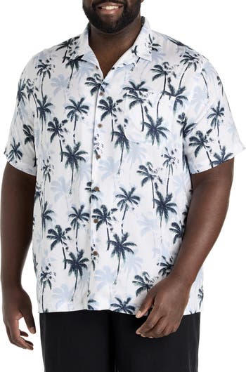 Whether it's vacation or relaxation, you'll look crisp and polished in our casual, comfortable button-down sport shirt. Designed at DXL with proper proportions that fit and flatter the Big and Tall men, it has a silky soft feeling and eye-catching palm tree print pattern that offers a cool, laid-back vibe. Wear it tucked in or out, with shorts and sandals or jeans and twills; it truly is that versatile.