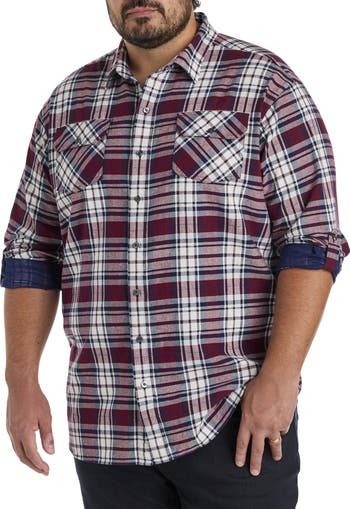 Crafted of 100% cotton, this plaid sport shirt is the casual layer you need. Lightweight and soft to the touch, it allows for the freedom to move without restriction and is designed at DXL with proper proportions for Big + Tall guys. It's perfect on its own or layered over a T-shirt and left open. The sleeves are easily adjustable for a stay-in place short sleeve look with a contrasting color at the cuffs. Leave it untucked and pair it with dark jeans for cool, casual style.