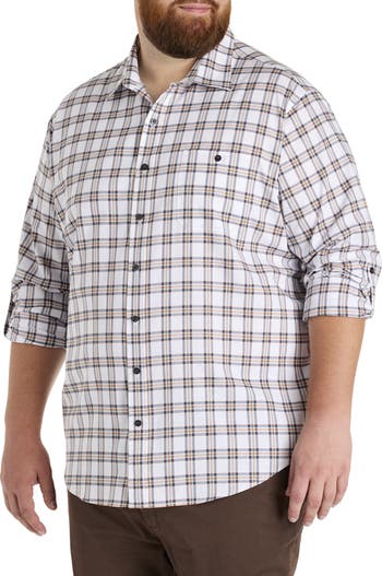 Crafted in 100% cotton, this plaid sport shirt is the casual layer you need for warm weather. Lightweight and comfortable, it allows for the freedom to move without restriction and is designed at DXL with precise proportions and an ideal fit for Big + Tall guys. It's perfect on its own or layered over a T-shirt and left open. Leave it untucked and pair it with dark jeans for a cool, put-together look. Plus, roll up the sleeves to instantly create a short-sleeve look.