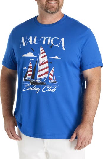 For Nautica fans, a graphic T-shirt like this one is the ultimate warm-weather staple. Designed with proper proportions for Big and Tall guys, it's made from a blend of soft cotton and eco-friendly recycled polyester for a smaller environmental footprint. It's a casual, confident look in a sea of plain white tees and is designed with the signature sailing team graphic on the front side.