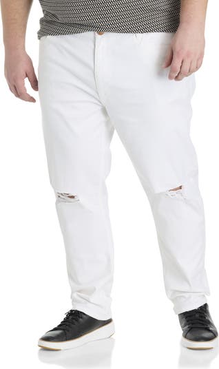 Made at DXL with precise proportions and an ideal fit for Big and Tall guys, these white denim jeans are designed in our most modern fit. They sit below the waist and are tapered through the hips, thighs and legs. Crafted in a cotton and recycled polyester blend for a smaller environmental footprint, they feature built-in stretch for comfort and the freedom to move without restriction and have an on-trend deconstructed style for a modern look.