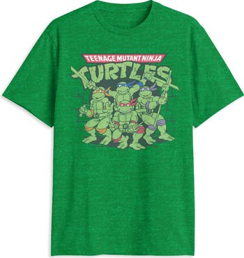Cowabunga! Bursting onto the scene in 1984, these four friends: Leonardo, Donatello, Raphael and Michelangelo share their love for crime fighting and pizza pies on this vintage inspired T-shirt. Crafted in 100% cotton with a relaxed, roomy fit, it's the perfect choice for casual comfort and "heroes in a half shell turtle power.
