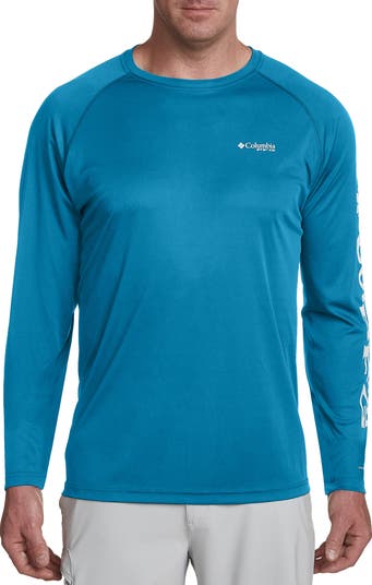 Crafted of a soft, moisture-wicking, quick-drying fabric with a sporty sleeve graphic, this UPF 50 tech tee will keep you dry, comfortable and protected during long hours on the water.