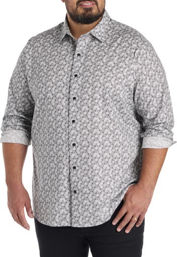 This eye-catching sport shirt is a modern take on traditional button downs. Designed at DXL with precise proportions and a perfect Big and Tall fit, it's crafted from an eco-friendly, more sustainable cotton blend that allows for the freedom to move without restriction. The tonal dotted print pattern lends versatile style that can be worn casually with jeans or dressed up with a sport coat for the office.