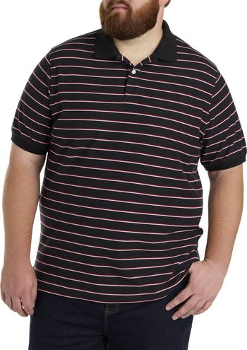 Stripe it rich. Iconic style is yours with this tri-colored polo shirt. Crafted in a soft and lightweight cotton blend, it's comfortable, easy-to-wear and gives you the freedom you need to move without restriction. Designed at DXL with precise proportions and an ideal fit for Big and Tall guys, it's comfortable, easy-to-wear and allows for the freedom to move without restriction.