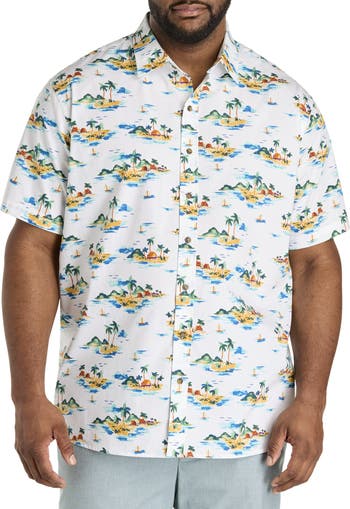 Sun, fun and the beach are calling in this stylish sport shirt from Oak Hill. Designed with tropical vibes and an island state of mind, this lightweight shirt has a laid-back and playful vibe. It's a warm-weather essential that belongs in every man's wardrobe, whether you're headed on vacation or in your own backyard. Designed at DXL with proper proportions for Big and Tall guys, it's crafted in 100% cotton and cut in a roomy, comfortable fit that allows for the freedom to move without restriction.