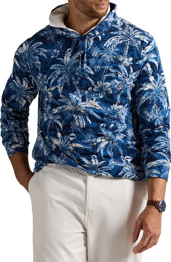 This stylish layer from Polo Ralph Lauren combines the look of a hoodie with the lightweight feel of your favorite cotton T-shirt. It features an allover two-tone print including palm trees and hibiscus flowers for a tropical feel.