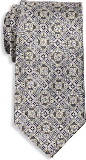 Add a touch of texture and understated sophistication to your dresswear looks with this luxe silk tie from Oak Hill Premium. Designed at DXL, it's expertly proportioned in a longer length with a perfect fit for Big and Tall guys. The eye-catching geometric medallion print will enliven any suited look.