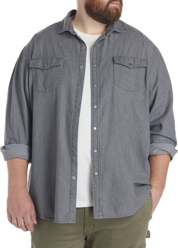 A modern take on the classic button-down sport shirt, this denim style is a must have for your wardrobe. Crafted in soft and lightweight 100% cotton, it was designed at DXL with precise proportions and an ideal fit for Big and Tall guys and allows for the freedom to move without restriction. It's comfortable and versatile in a new, fresh-for-the season dark wash, making it a surefire favorite for casual Fridays at the office and date nights alike. Roll up the sleeves and pair it with your favorite chinos or cargo pants and our trucker jacket for a casual yet still sophisticated look.