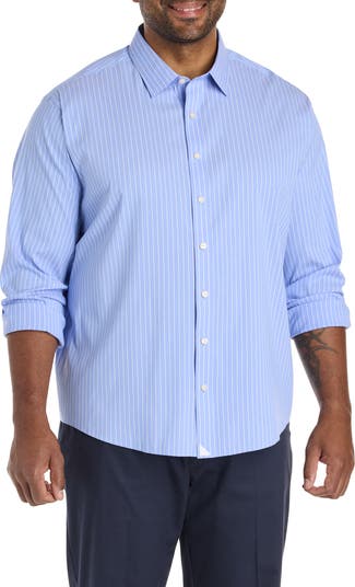 UNTUCKit perfected the untucked shirt with that just-right length and timeless style. DXL perfected the Big + Tall fit. So we’ve partnered together to let even more guys look sharp---even at their most casual. This shirt delivers the perfect balance of style and function, made for guys who want the crisp presence of a traditional button-down but with modern tech built in. It features a classic stripe pattern that pairs seamlessly with chinos, tailored trousers, or a sport coat for a refined yet relaxed look. It's machine washable for easy-care and features BRRR° micro-mineral cooling technology which enhances comfort by helping to draw heat and moisture away from the skin, keeping you feeling cool and dry. The untucked style falls at just the right length on shorts or pants. With a comfortable fit that sits close to the body without being tight. It allows for the freedom to move without restriction and won't ride up, making it a smart investment.