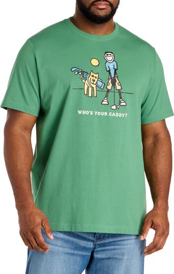 Whether you're a seasoned golf pro, love the 19th hole or can't resist a great-fitting T-shirt, this fun Life is Good® tee is the one for you. Designed with precise proportions and the perfect Big and Tall fit and crafted in 100% cotton with a playful "who's your caddy" graphic, it's comfortable, easy-to-wear and totally up to par! Pair it with shorts, jeans, joggers and more for a complete, casual look.