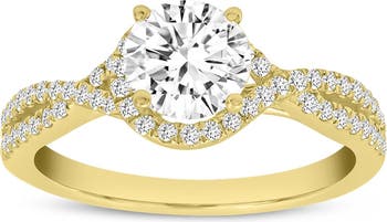 Bijou 14K Yellow Gold Round Cut Lab Grown Diamond Halo Engagement Ring - 2.25 Ct