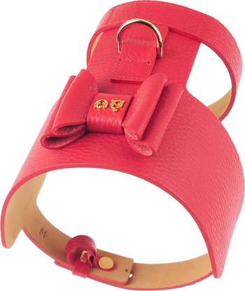 Unleash your pet's inner diva and let them take the spotlight with this stunningly chic Moshiqa Classic; Bijou Harness. Crafted from genuine leather and suede, this caged harness not only exudes elegance but also offers an adjustable buckle for a customized, snug fit. The pièce de résistance? A signature bow crowned with the Moshiqa monogram, adds that extra touch of uniqueness and luxury. Simply attach one of our stylish leads to the "D" ring on the back, and voilà, your star pet is ready for a show-stopping street strut that's sure to turn heads and garner admiration at every corner!