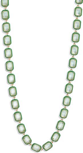 Faceted stones catch the light on this refined necklace plated in a goldtone finish.