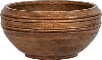 Create a warmly welcoming atmosphere at your table with the natural beauty and textural warmth of this serving bowl made from hand-turned mango wood that elevates an essential item to an elegant sculpture.