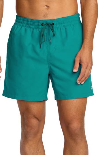 Make a splash in versatile swim trunks constructed from a stretchy, quick-drying fabric with a comfortable elastic-drawstring waistband and handy side pockets.