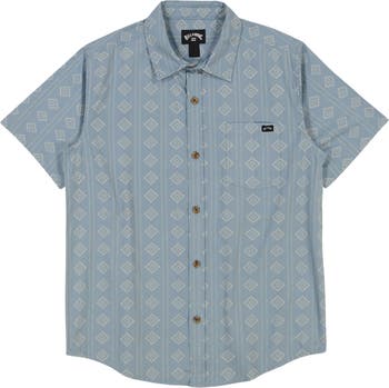 Prewashed cotton brings exceptional softness to a shirt that's patterned in pale diamonds and stripes and designed to keep your kid looking smart and staying comfortable in the sun.