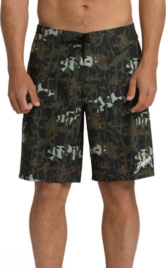 Stretchyt, durable fabric made entirely of recycled fibers keeps you riding high in board shorts designed with a secure side pocket for sun-and-sand essentials. They sit at the hips and hit just above the knees to protect your thighs in the water and give you total surfer cred on land.