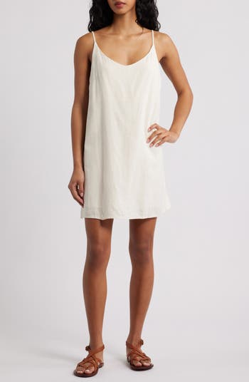 Slip into this light and airy linen-blend dress cut in a leggy length and suspended by supportive adjustable straps.