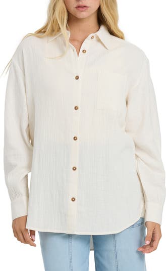 Dropped shoulders enhance the relaxed fit of this textured shirt cut from lightweight cotton.