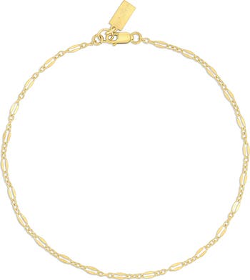 Elevate your everyday looks with a delicate chain anklet playfully punctuated with flattened links for a subtle dimensional twist.