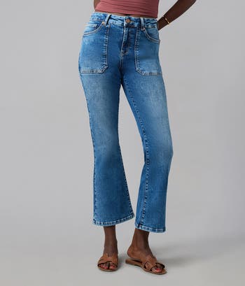 - High-rise waist with bootcut leg