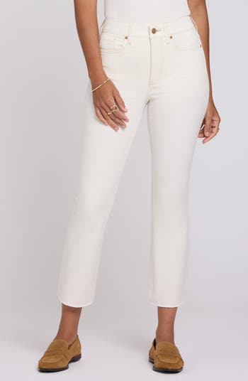 Slimmed down for a modern silhouette, these ankle-grazing bootcut jeans feature high rise balanced by abbreviated, frayed hems. Exclusive Lift Tuck® Technology smoothes and supports in front and lifts in back.