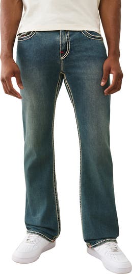 Red rope stitching and back-flap pockets add signature True Religion style to stretch-kissed bootcut jeans that combine street style and comfort.