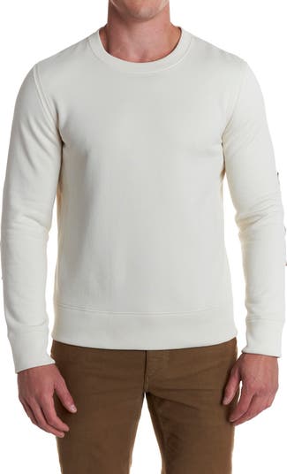 Washed and brushed leather elbow patches reinforce a classic midweight cotton-blend sweatshirt finished with an iconic grosgrain tab.