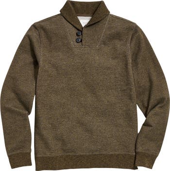 Military fatigues inspire this heathery, earthy-hued cotton pullover finished with a shawl collar.