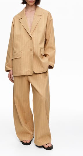 Tailored double-breasted jacket in a cotton blend with a structured silhouette. Designed with a lapel collar, flap pockets and long sleeves for a refined, contemporary look
