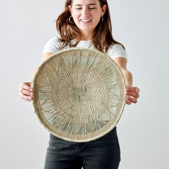 The Binga Lace Basket is a stunning evolution of the traditional Binga Basket, featuring a semi-transparent lace weave that introduces a delicate and unique aesthetic. Handwoven by skilled artisans in Zimbabwe, these baskets are crafted from 100% natural, sustainably harvested Ilala palm, ensuring both beauty and eco-conscious design. This exclusive collection is the first of its kind available in the United States, celebrating Zimbabwe’s renowned heritage crafts. Originally used as winnowing baskets, these intricate creations are now admired as striking wall art, blending organic textures with contemporary elegance. Perfect as standalone pieces or as part of a curated display, the Binga Lace Basket brings a touch of artisanal beauty and heritage into modern homes. This piece features a convenient hook on the back for easy hanging.