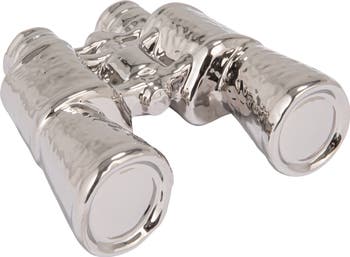 Add a bold and sophisticated touch to any space with this Stoneware Binoculars Décor, designed with a sleek chrome finish for a modern aesthetic. Perfect for Farmhouse, Modern, and Glam interiors, its sculptural form enhances décor with effortless elegance. Use it as a statement piece on shelves, desks, or coffee tables, creating a visually captivating display. Made of durable stoneware with a polished chrome finish, its sturdy construction ensures lasting appeal. Measuring 7 inches in length, 6 inches in width, and 2.25 inches in height, this decorative accent serves as both a functional and artistic addition to any setting.
