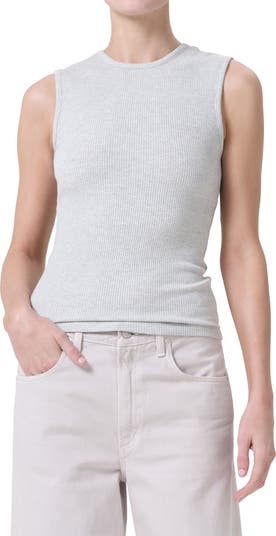 A fitted tank is ribbed in a cotton-kissed blend and ready to be a low-profile first layer or a sassy solo player.