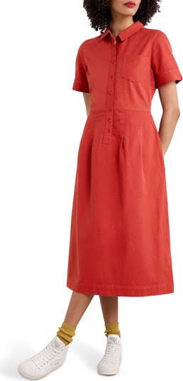 Fitted at the bodice then flared at the skirt, this timeless shirtdress made from organic cotton is elevated enough for the office and relaxed enough for weekend wear.