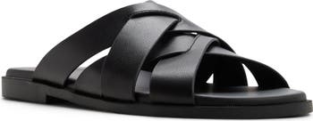 Crisscrossing leather straps bring an elevated look and feel to a summery slide sandal built with dual-density foam padding and a rubber sole to enhance the durability of each step.