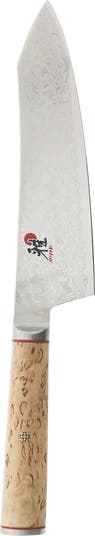 How it's made: The blade core made of MicroCarbide MC63 powder steel is surrounded by 100 layers of two different types of steel with different levels of hardness. The CRYODUR® blade is hardened using a specially developed ice-hardening process at -196°C that guarantees extreme hardness of 63 Rockwell and a lasting sharp blade. A special blade treatment alters the surface structure of each layer, resulting in its individual floral damascus pattern. A traditional Japanese Honbazuke honing gives every blade its incomparable sharpness.