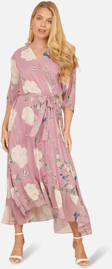 With wedding season fast approaching, this is house designed midi dress from Yumi fits the RSVP for any occasion. With a wrap over neckline, tie belt at the waist and flowy midi dip hem length. The kimono style sleeves add a flattering element to this dress, With all over bird and floral print that is feminine and unique.
