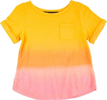 An ombré sunrise brightens any day in this T-shirt fashioned with jaunty cuffed sleeves and a patch pocket.